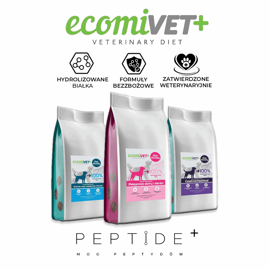Unikalna linia diet weterynaryjnych z peptydową, enzymatyczną hydrolizacją białek na specyficzne problemy psów – problemy skórne, trawienne oraz kontrola wagi i pielęgnacja stawów.