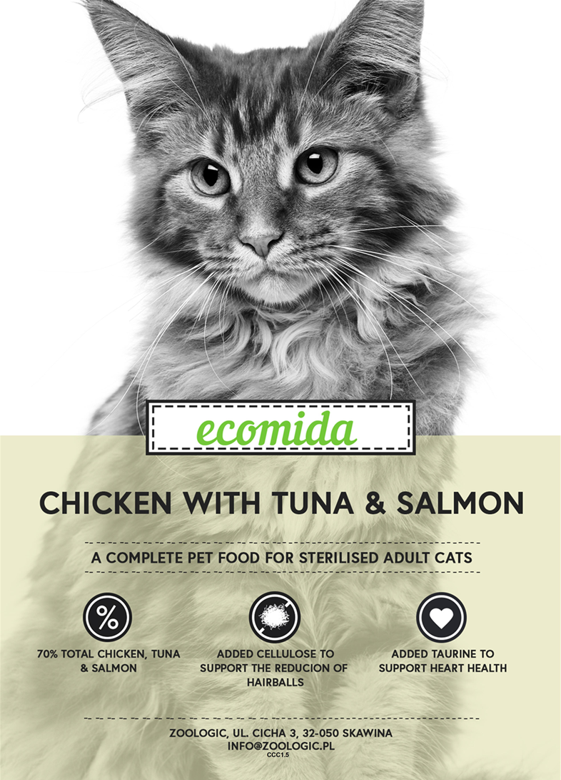 🧡 Ecomida – bezzbożowa receptura z różnorodnym białkiem dla wymagających kotów –