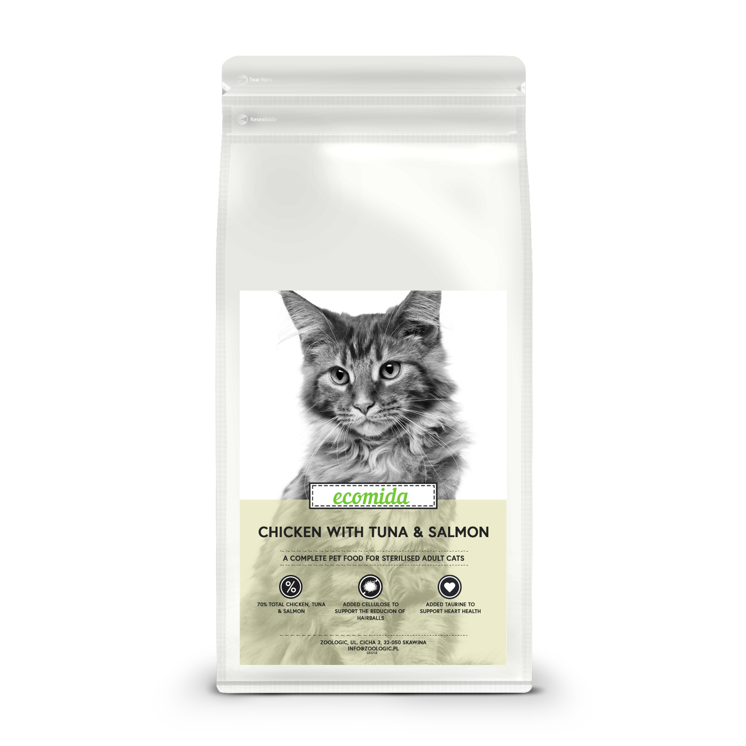 Ecomida Connoisseur Kurczak, Tuńczyk, Łosoś 1,5 kg sucha karma bezzbożowa dla kotów