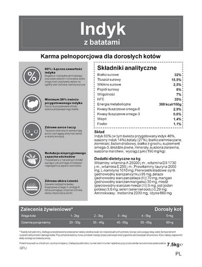 Ecomida hypoalergiczna karma bezzbożowa dla kotów dorosłych z indykiem i batatami. To doskonałe rozwiązanie dla dorosłego kota, bogate w wysoko przyswajalne białko indyka ( 60% indyka w białku ogólnym). Krama hipoalergiczna, monobiałkowe źródło białka zwierzęcego.