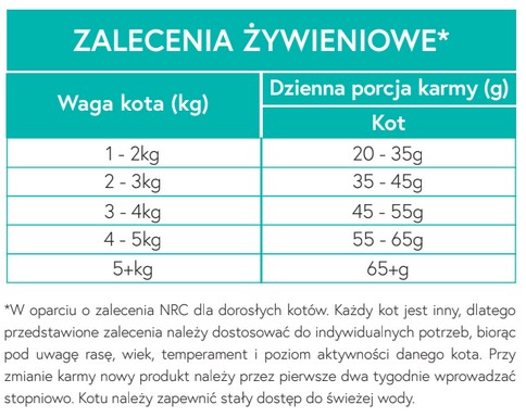 Od 12 miesiąca życia koty wymagają kompletnej i pełnowartościowej diety opracowanej specjalnie z uwzględnieniem potrzeb dorosłych osobników. Pomaga im ona w zachowaniu zdrowia i dobrego samopoczucia, dostarczając wszystkich składników, których potrzebują dorosłe koty.