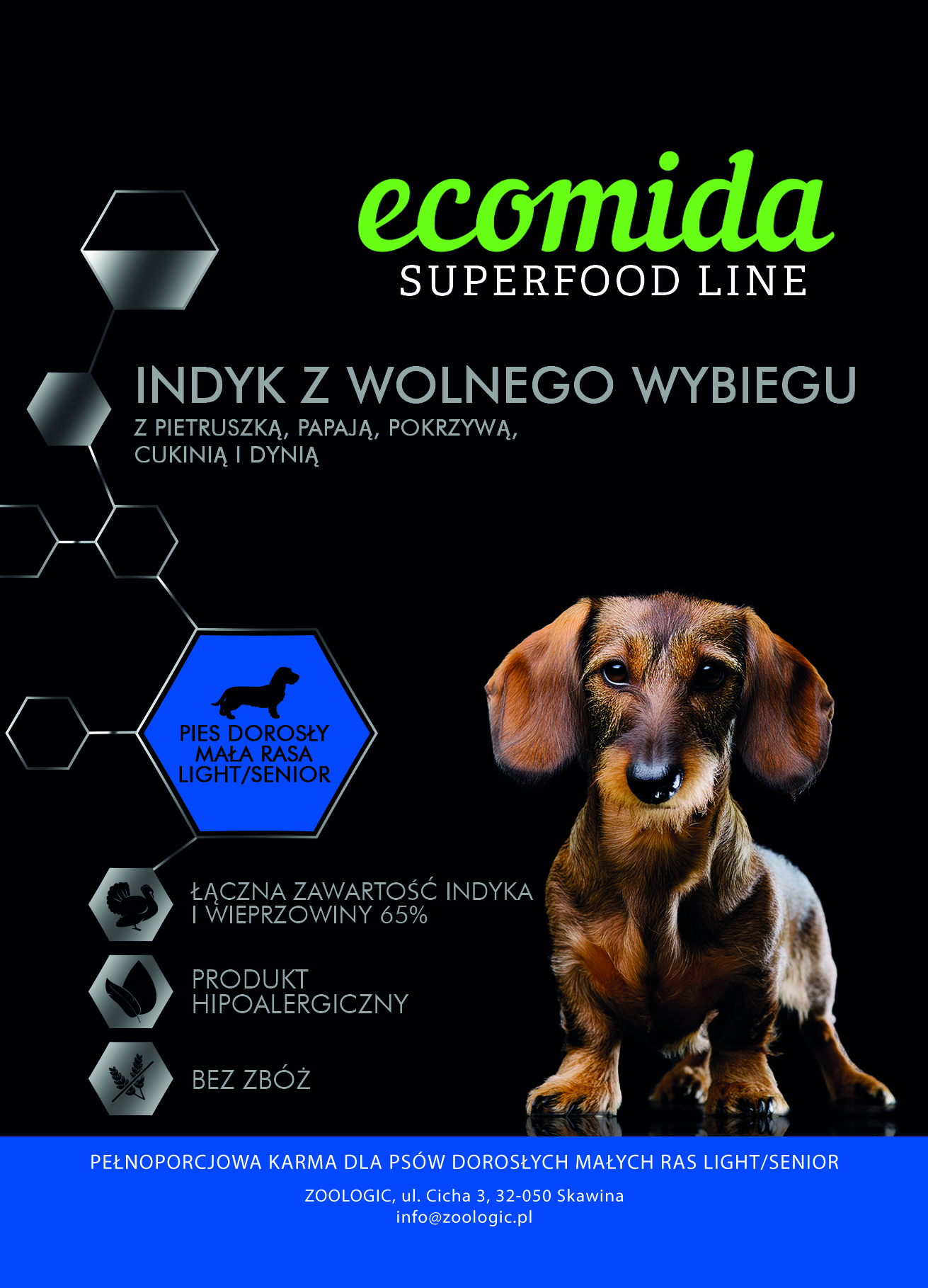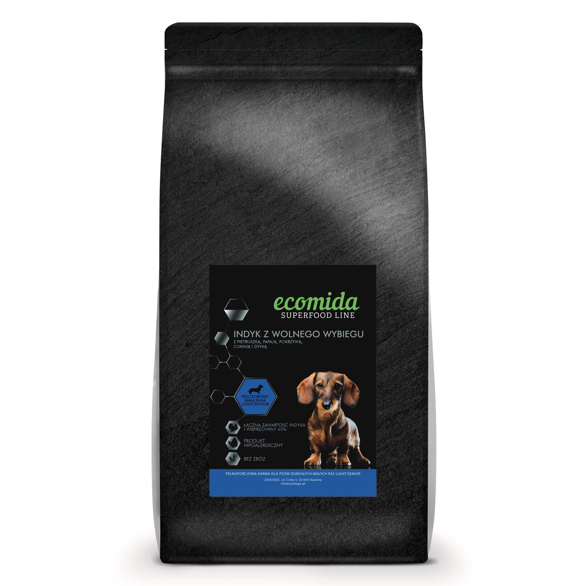 🐶 Ecomida Superfood 65 Indyk & Wieprzowina Light / Senior Mała Rasa – wyjątkowa, bezzbożowa receptura z naturalnym kolagenem, wspierająca zdrowe stawy, kości i witalność starszych psów i psów z nadwagą.