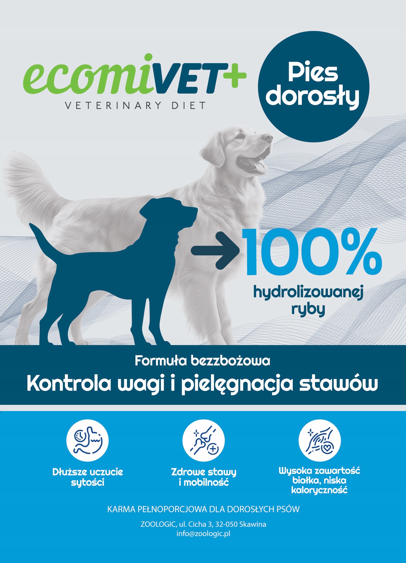 ecomiVET+ LOW FAT Waga Stawy 10kg dieta dla psa 100% hydrolizat Biała Ryba