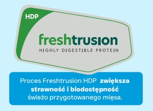 Freshtrusion HDP to unikalny proces, który polega na gotowaniu świeżego mięsa i ryb (w zależności od modelu karmy) w obecności naturalnego enzymu, który rozkłada białka na małe peptydy. Wielkość peptydów odgrywa kluczową rolę w trawieniu i wchłanianiu białka. Gdy białko nie jest skutecznie wchłaniane, prowadzi to do obniżenia wartości odżywczej.