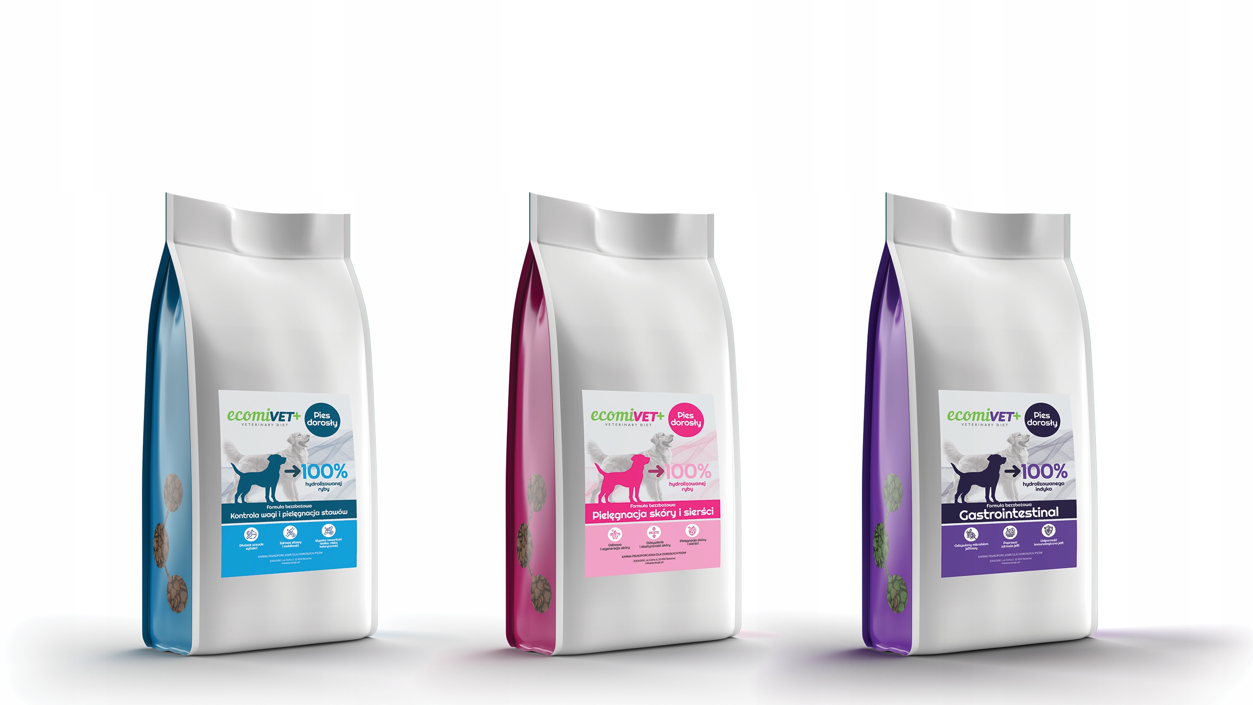 ecomiVET+ Kontrola Wagi i Pielęgnacja Stawów to specjalnie opracowana dieta wykorzystująca moc peptydów, w celu redukcji lub utrzymania prawidłowej masy ciała oraz właściwego wspomagania zdrowia układu stawowego psówFormuła diety, obejmuje wysoką zawartość białka i niską zawartość tłuszczu, dodatkowe składniki takie jak L-Karnityna i omułek zielonowargowy, znacząco przyczynia się do poprawy wagi i zdrowia stawów. Formuła karmy sprawdzi się również jako dieta eliminacyjna przy schorzeniach trzustki.