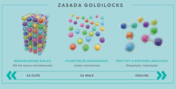 Instynktownie można by przypuszczać, że nienaruszone białko jest najlepsze do trawienia przez psa, ponieważ zawiera wszystkie składniki odżywcze razem jako całość. Podobnie, można by pomyśleć, że pojedyncze aminokwasy, rozbite na jak najmniejsze cząsteczki, byłyby znacznie łatwiejsze do wchłaniania. Jednak badania naukowe wykazały, że idealne wskaźniki przyswajalności i wchłaniania występują w krótkich łańcuchach peptydowych. Nazywamy to „Zasadą Goldilocks”.